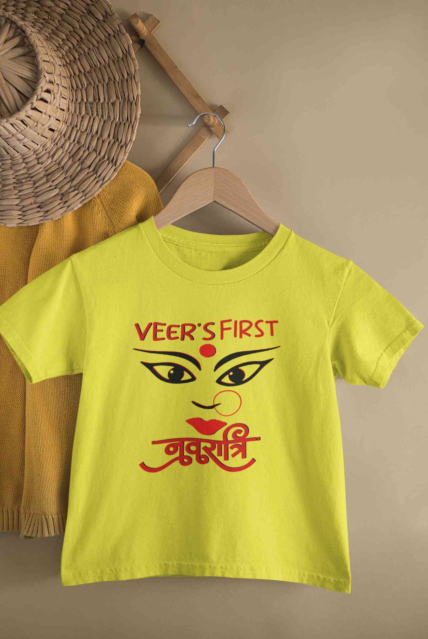 Custom Name First Navratri Durga Pooja Half Sleeves T-Shirt for Boy-KidsFashionVilla