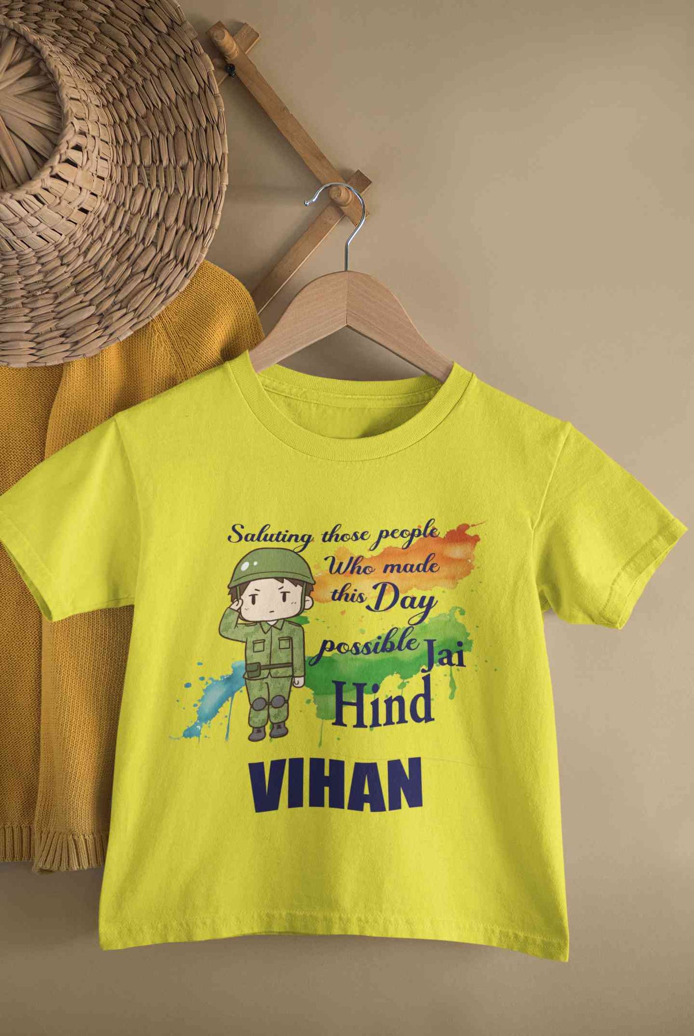 Custom Name Saluting Those People Who Made This Day Possible Jai Hind Independence Day Half Sleeves T-Shirt for Boy-KidsFashionVilla