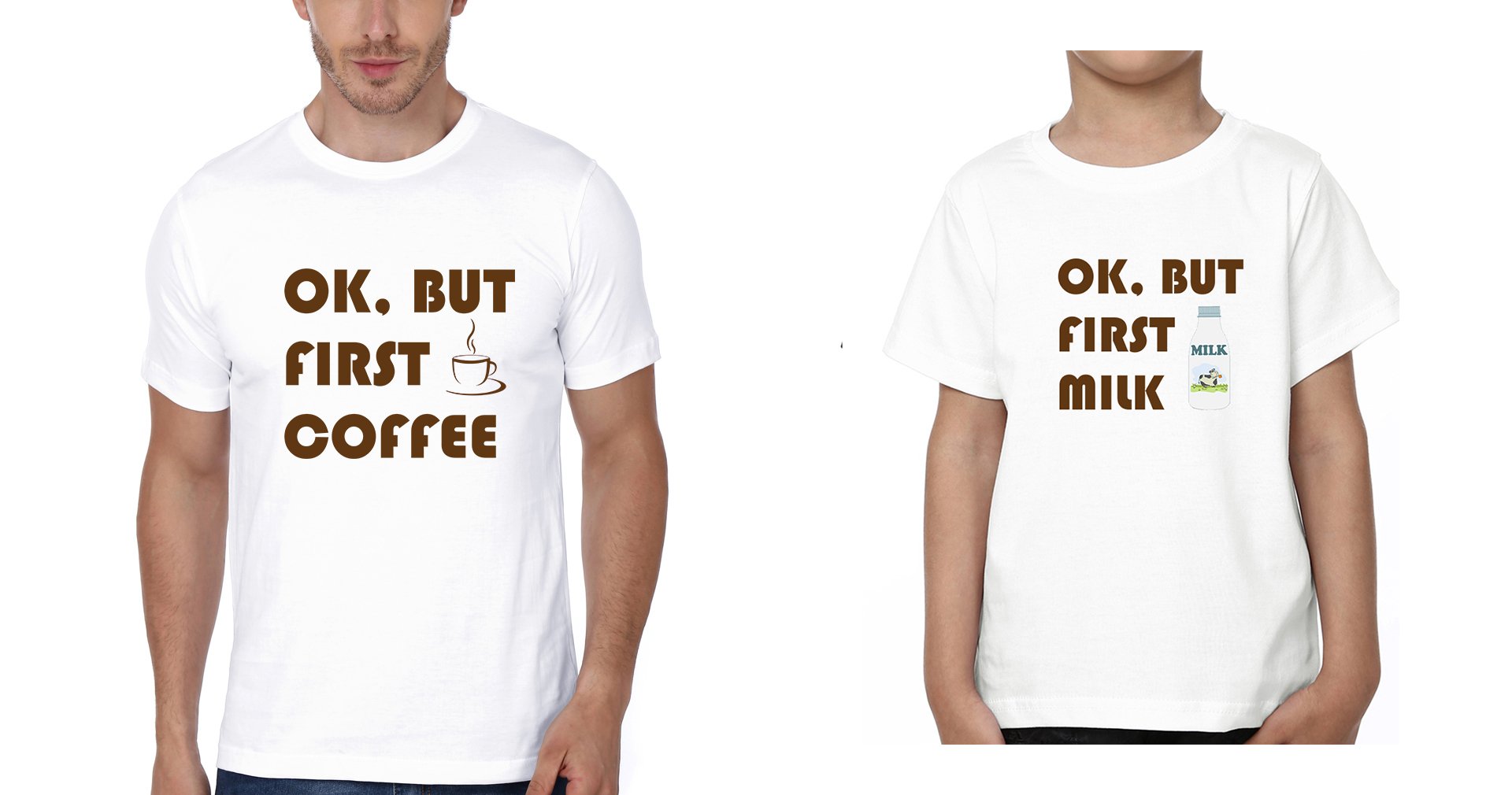 Ok But First Coffee Ok But First Milk Father and Son Matching T-Shirt- KidsFashionVilla