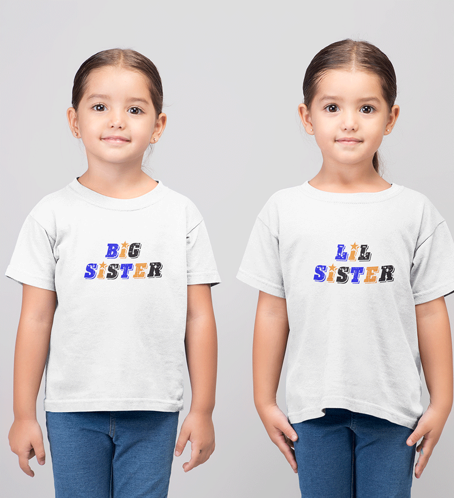 Big Sister Lil Sister-Sister Kids Half Sleeves T-Shirts -KidsFashionVilla